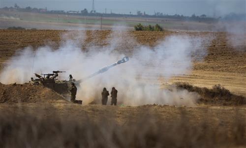 NEAR THE ISRAEL-GAZA BORDER — At 4:40 a.m. along the northern section of the border, tanks roll along the street, clanking on the pavement as they move.